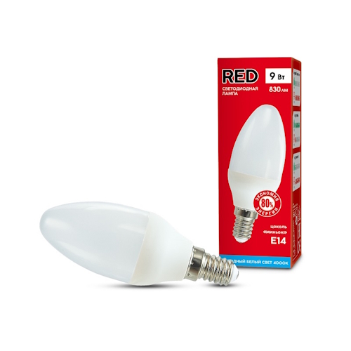 Светодиодная лампа B35 E14 9 Вт холод свеча Red