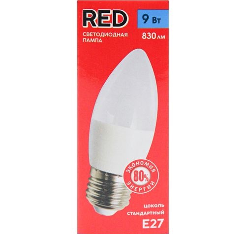 Светодиодная лампа, B35, E27, 9 Вт Red