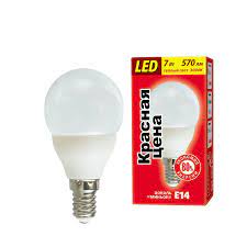 Светодиодная лампа, P45, E14, 7 Вт Red