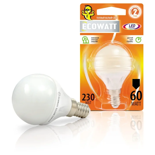 Светодиодная лампа, P45, E14, 9 Вт*ч Эковатт