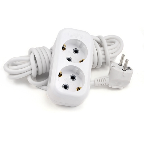 Электрический удлинитель с земл., 2 гнезда, 2 м LUX