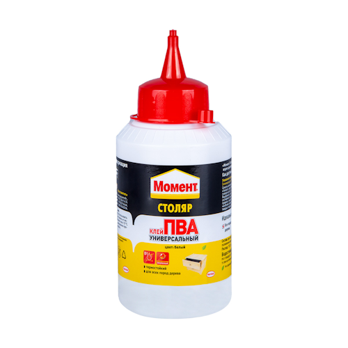 «Момент Столяр» — универсальный клей, предназначенный для склеивания дерева, кожи, ткани, бумаги, а также некоторых видов пластика. Наличие специальных добавок в составе обеспечивает высокую адгезию. Благодаря моментальному схватыванию, термостойкости и высокопрочности клея, его можно использовать при сборке мебели, укладке ламината, а также в ряде множества ремонтно-строительных работ.