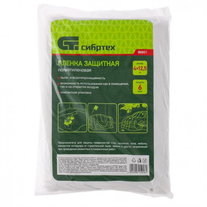 Пленка защитная 6 мкм 4х12,5 м Сибртех 88801