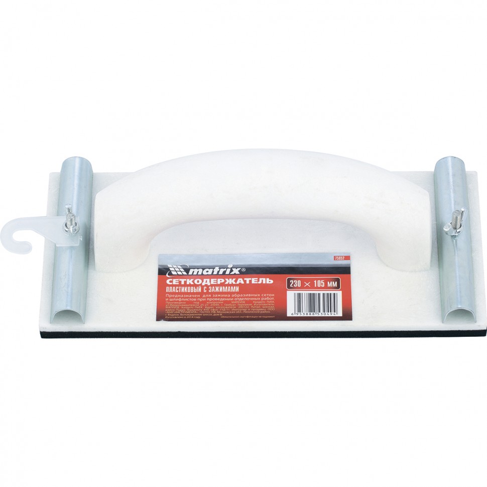 Сеткодержатель ТМ Matrix предназначен для шлифования и зачистки различных поверхностей, с помощью абразивных материалов (шлифлист, сетка) надежно фиксируя их с помощью металлических зажимов. Применяется для выравнивания поверхностей после штукатурки или шпатлевки, удаление неровностей, снятие различных покрытий или загрязнений с твердых поверхностей.