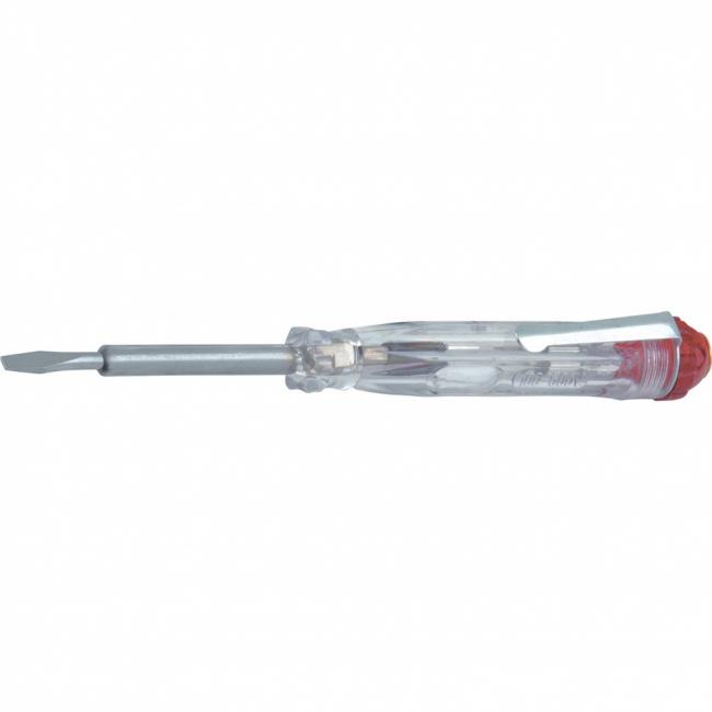 Отвертка-индикатор с профилем «прямой шлиц» предназначена для определения наличия напряжения в бытовых электрических сетях. Ручка изготовлена из прозрачной ацетилцеллюлозы. Стержень покрыт изоляцией по всей длине.