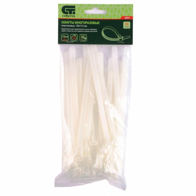 Хомуты белые (стяжки) 150 мм 50 шт Сибртех 45571