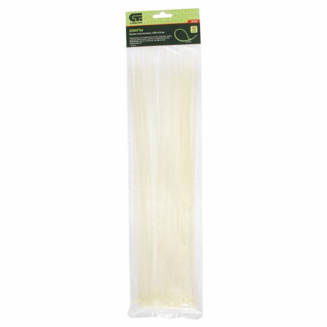 Хомуты белые (стяжки) 400 мм 4,8 мм 50 шт Сибртех 45538