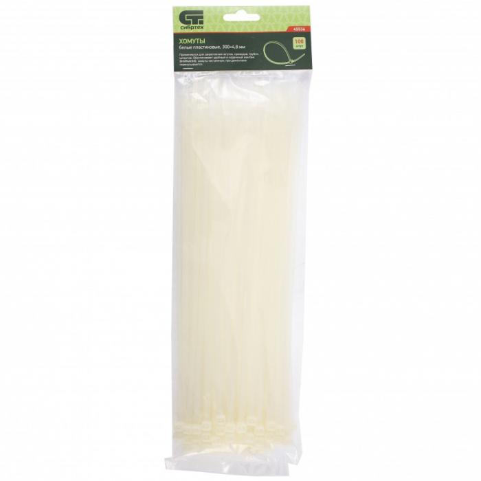Хомуты белые (стяжки), 300 мм, 4,8 мм, 100 шт Сибртех 45536