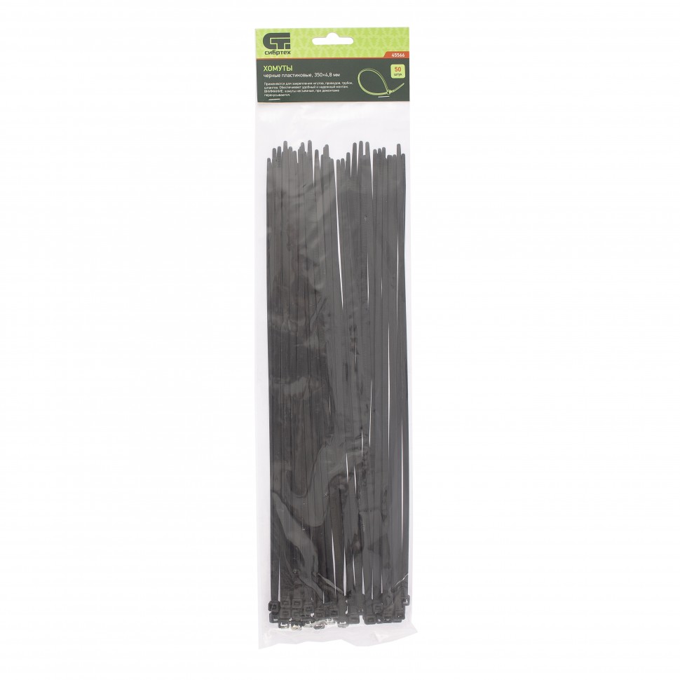 Хомуты черные (стяжки) 200 х 3,6 мм 100 шт Сибртех 45555