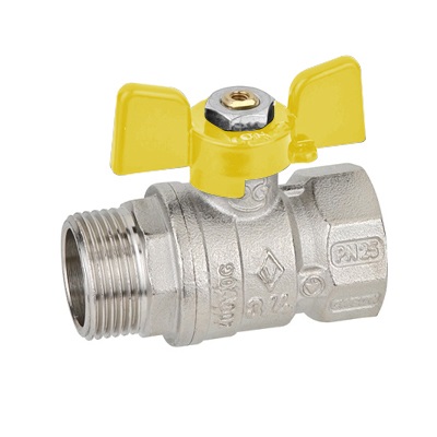 Кран шаровый для газа бабочка Bugatti 3/4" предназначен для быстрого и многократного перекрытия потока газового топлива и неагрессивных жидкостей. Шаровый кран для газа Bugatti отличается простотой монтажа, небольшими габаритами, отсутствие застойных зон в проточной части, малым временем, потраченным на поворот рукоятки. Для подключения к трубопроводу применяется внутренняя резьба B. Ручка-бабочка выполняется из алюминия с покрытием из желтой краски. Корпус крана выполняется из никелированной латуни. Шар, шток и муфта выполняются из латуни, уплотнение шара – из тефлона, уплотнение штока – из витона. Температурный диапазон для газа составляет от -20 до +60 оС, максимальное рабочее давление – 20 бар (для газа – 5 бар).