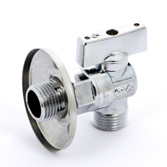 Миникран Tim шаровой латунный, угловой для смесителей и стиральных машин хромированный,"флажок" из АБС хромированный.