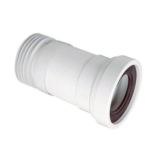 Гофра предназначена для подключения унитазов с косым и горизонтальным выходами. Конец гофры с манжетой монтируется в раструб серой канализации диаметром 110 мм. Также возможен монтаж в чугунные трубы и трубы черной канализации. Гофра изготовлена из полипропилена, имеет белый матовый цвет, уплотнитель изготовлен из нитроэластомера.