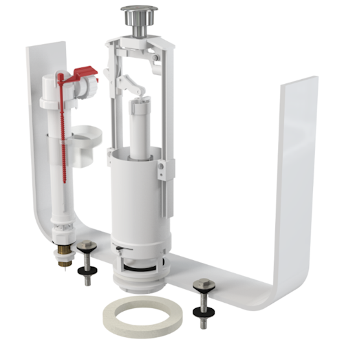 Комплект Alca Plast универсальный ( Сливной + заливной механизм). Оба механизма с возможностью регулировки по высоте. Стоп-кнопка дает возможность остановить смыв воды в любой момент при повторном нажатии. Клапан с ситом от загрязнений.